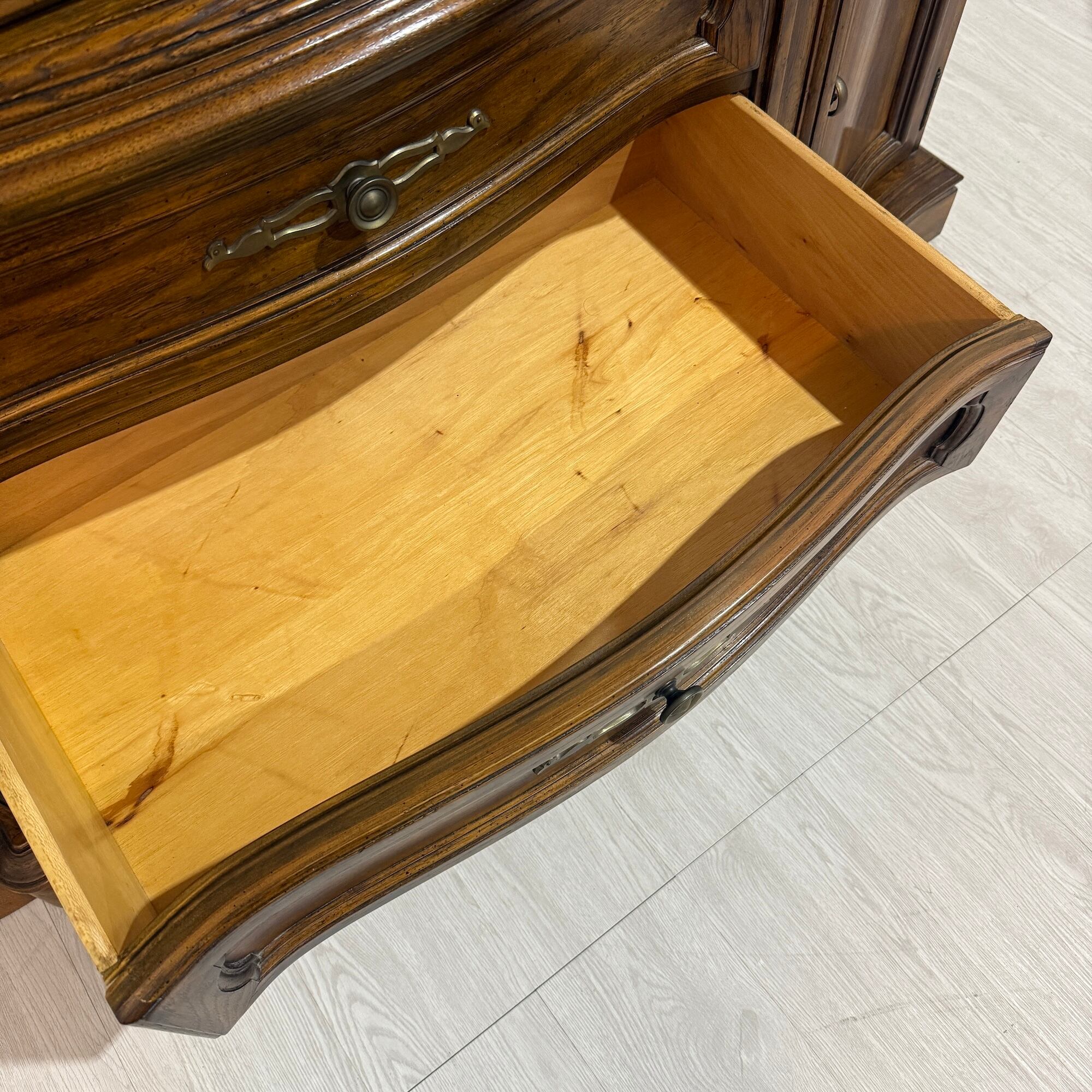 ドレクセルは日本生産から撤退しており、国内での流通は非常に限られています。特に状態の良い大型キャビネットは中古市場でも希少です。本品は大丸で購入された米国製であり、さらに美品コンディションでのご提供となります。ドレクセルを象徴するモデルの一つとして、大変価値ある逸品です。