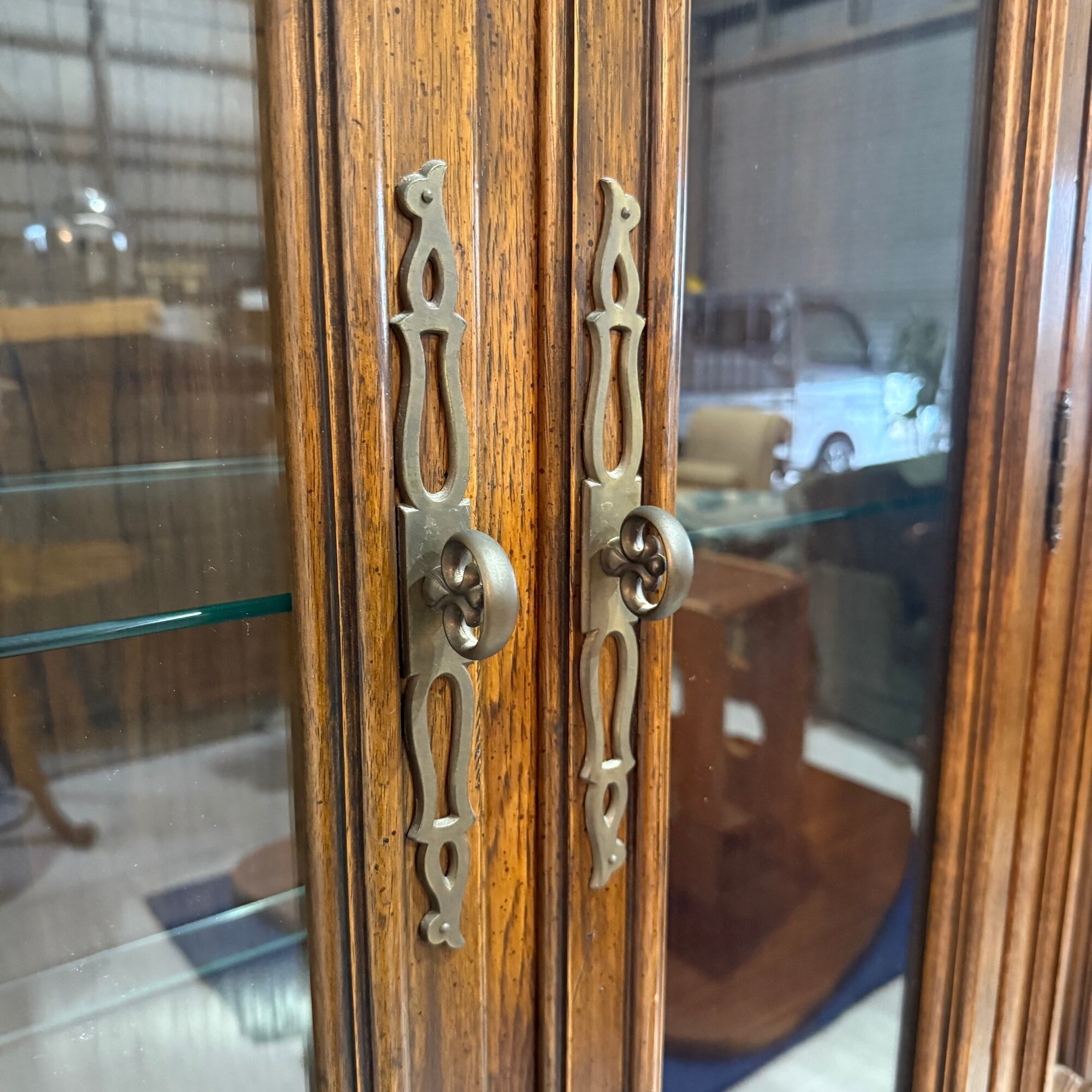 飾棚はもともと日常手に触れる家具ではないため、全体的に非常に美しく、目立つ傷や汚れは見受けられません。ガラス棚、引き出し内部、照明配線も良好で、動作も確認済みです。金具や木部の艶感も素晴らしく、丁寧に使用されてきたことが伺えます。まさに「超美品」と呼ぶにふさわしいコンディションです。