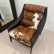 本品は、ポルトローナ・フラウの名作「Dezza(デッザ)」シリーズの中でも極めて希少なハラコ(カウハイド)仕様の一人掛けラウンジチェア。流麗なフレームとナチュラルな素材感が調和し、モダンかつ温もりある空間を演出します。