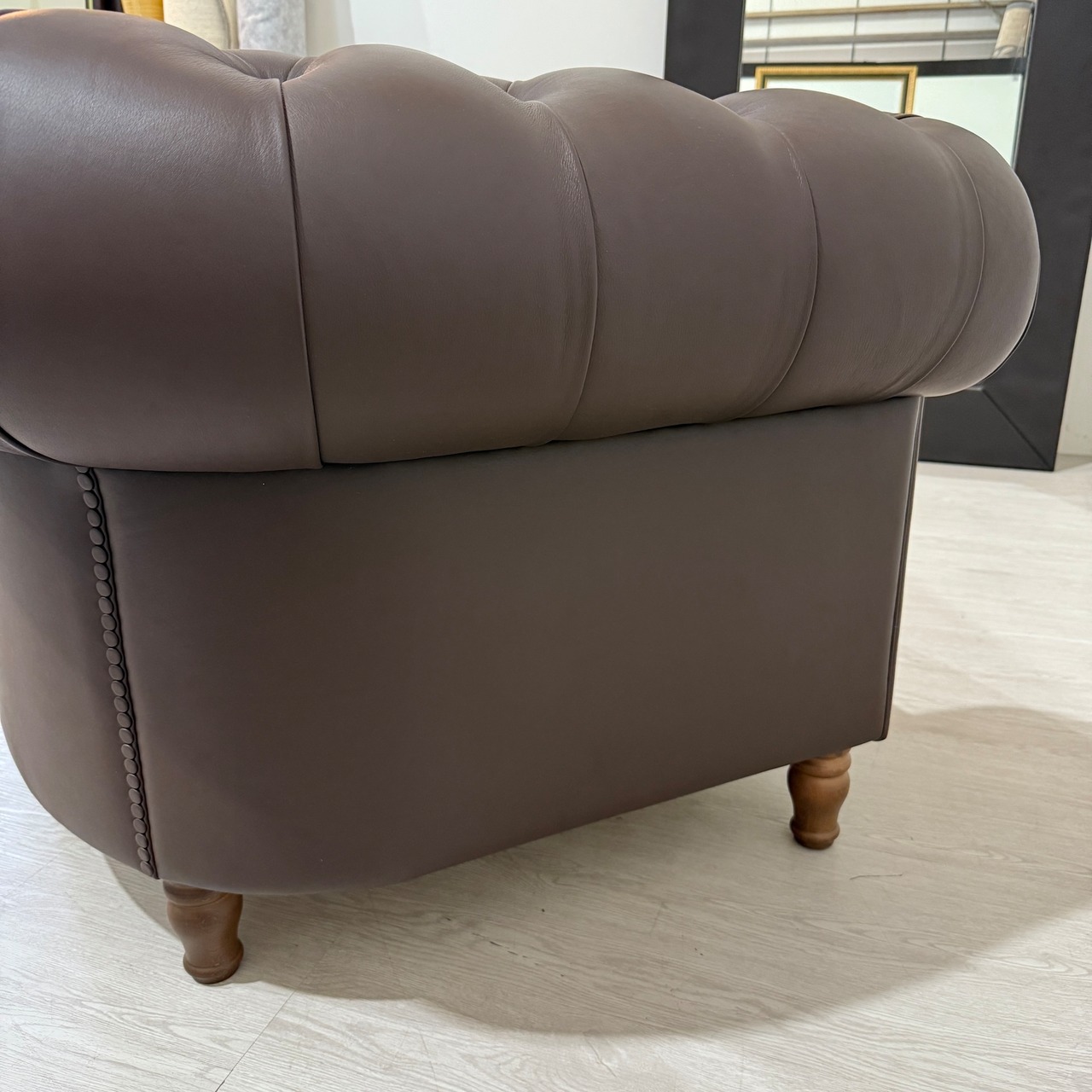 本商品は、ポルトローナ・フラウの代表的なクラシックモデル「CHESTER(チェスター)」。19世紀イギリス発祥のチェスターフィールドソファを、イタリア職人の手によって再解釈した珠玉の一品です。深く美しいボタン留めのキルティング、完璧にカーブを描くアーム、繊細に張り込まれたレザー……そのすべてが“本物”の証です。