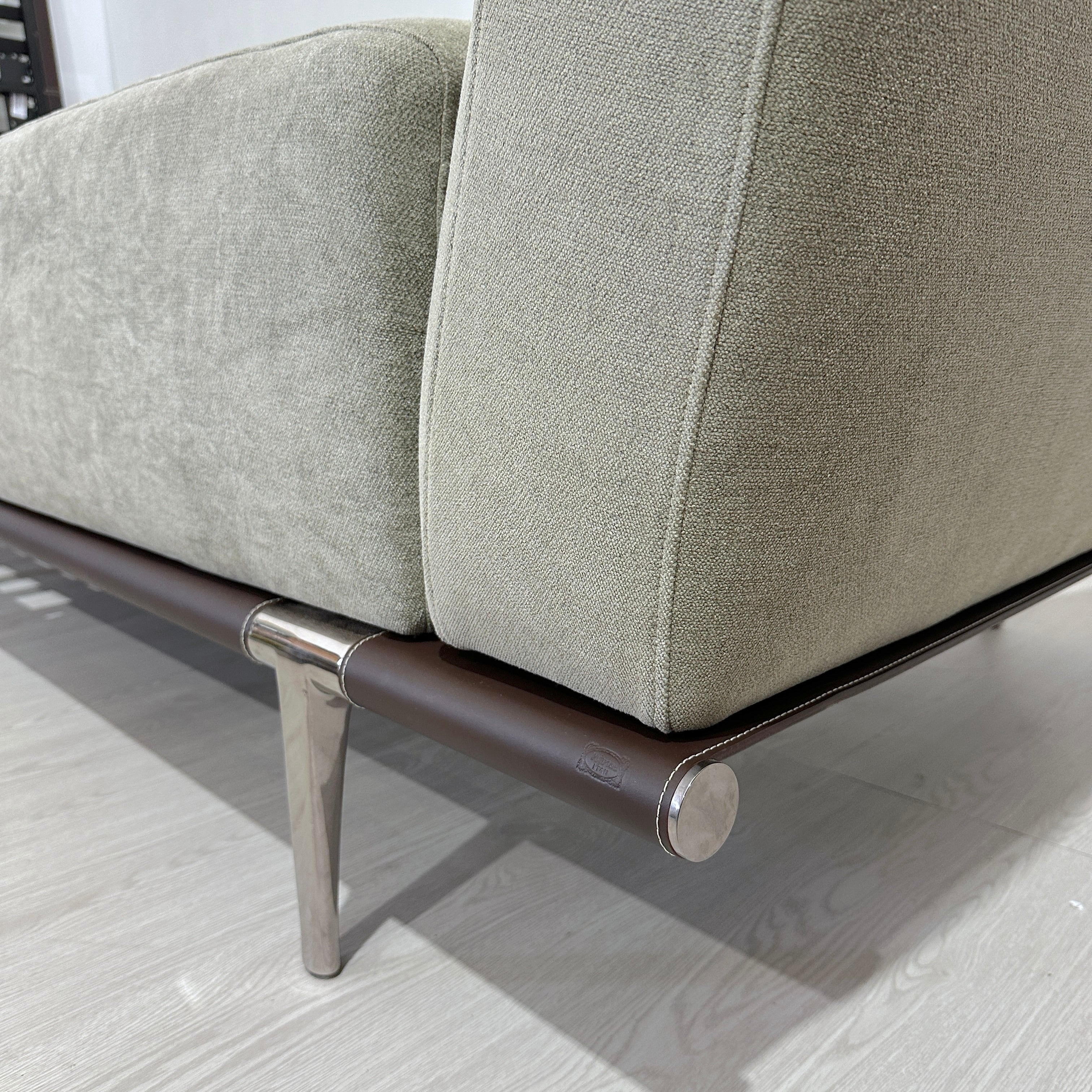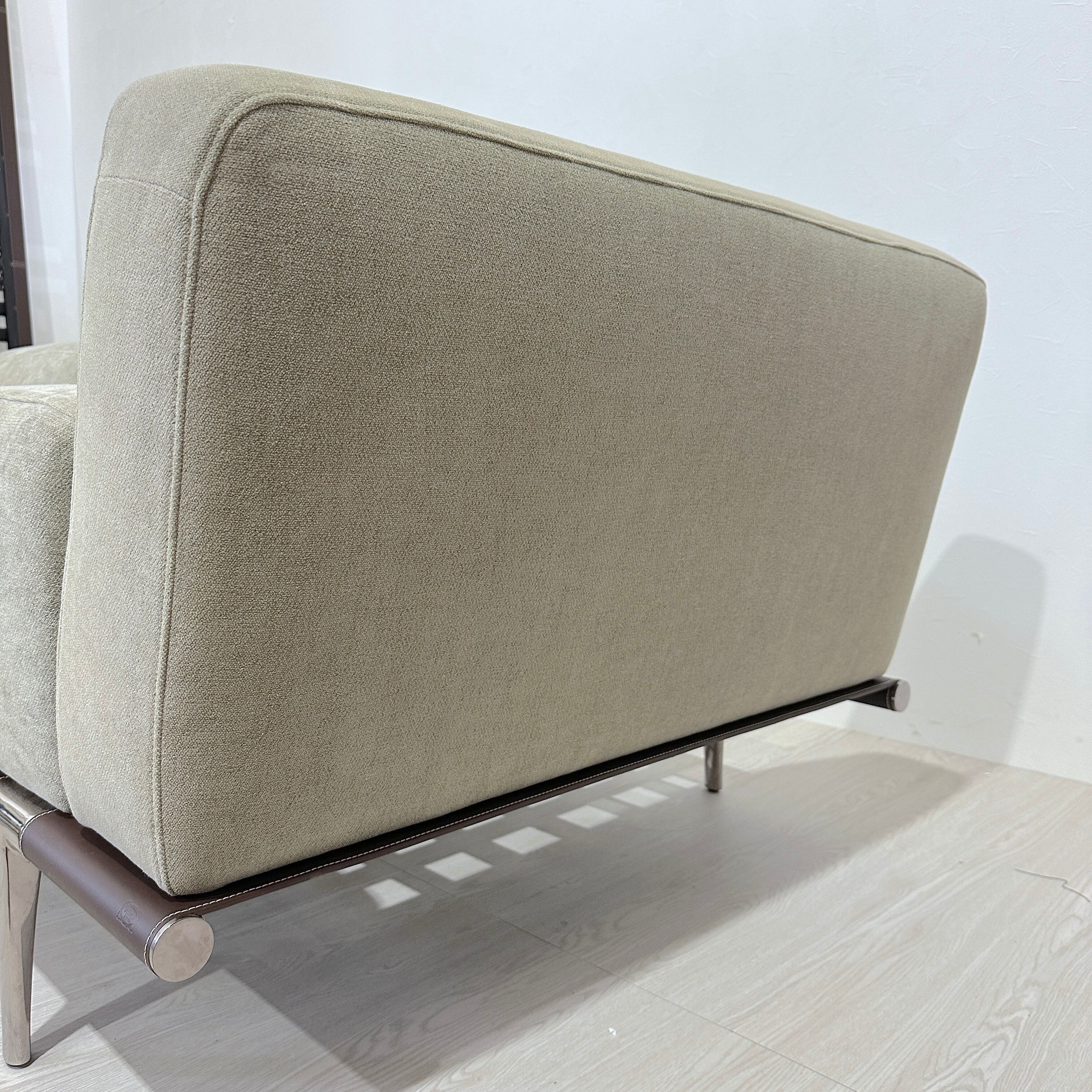素材と仕立て:最高級の生地を使用し、ポルトローナ・フラウの職人が一針一針丁寧に縫製したこのソファは、座るたびにその贅沢な質感を実感できます。