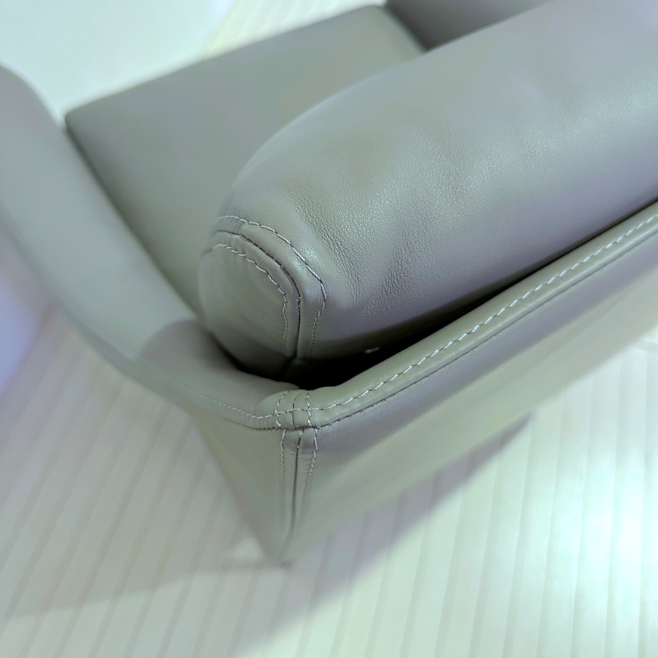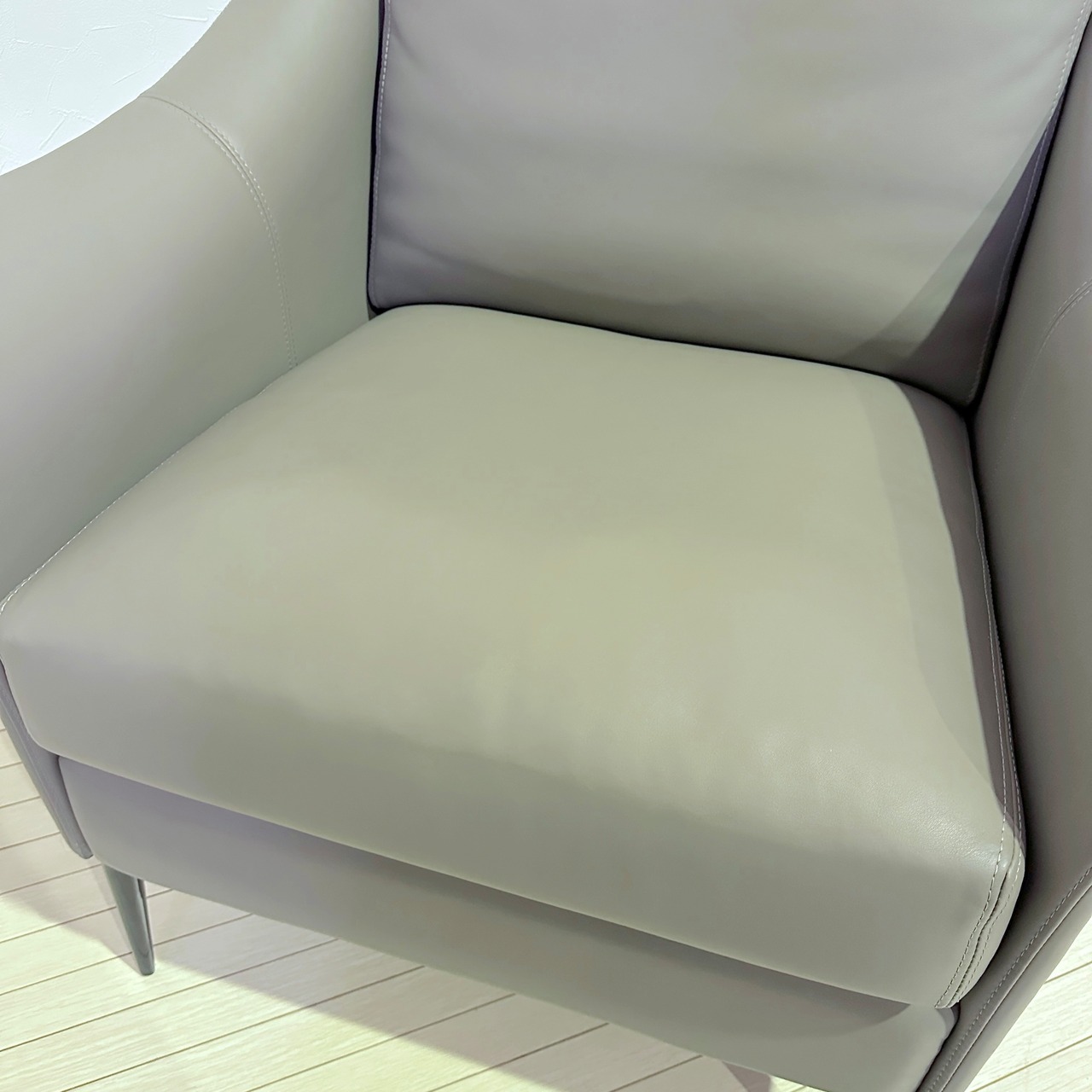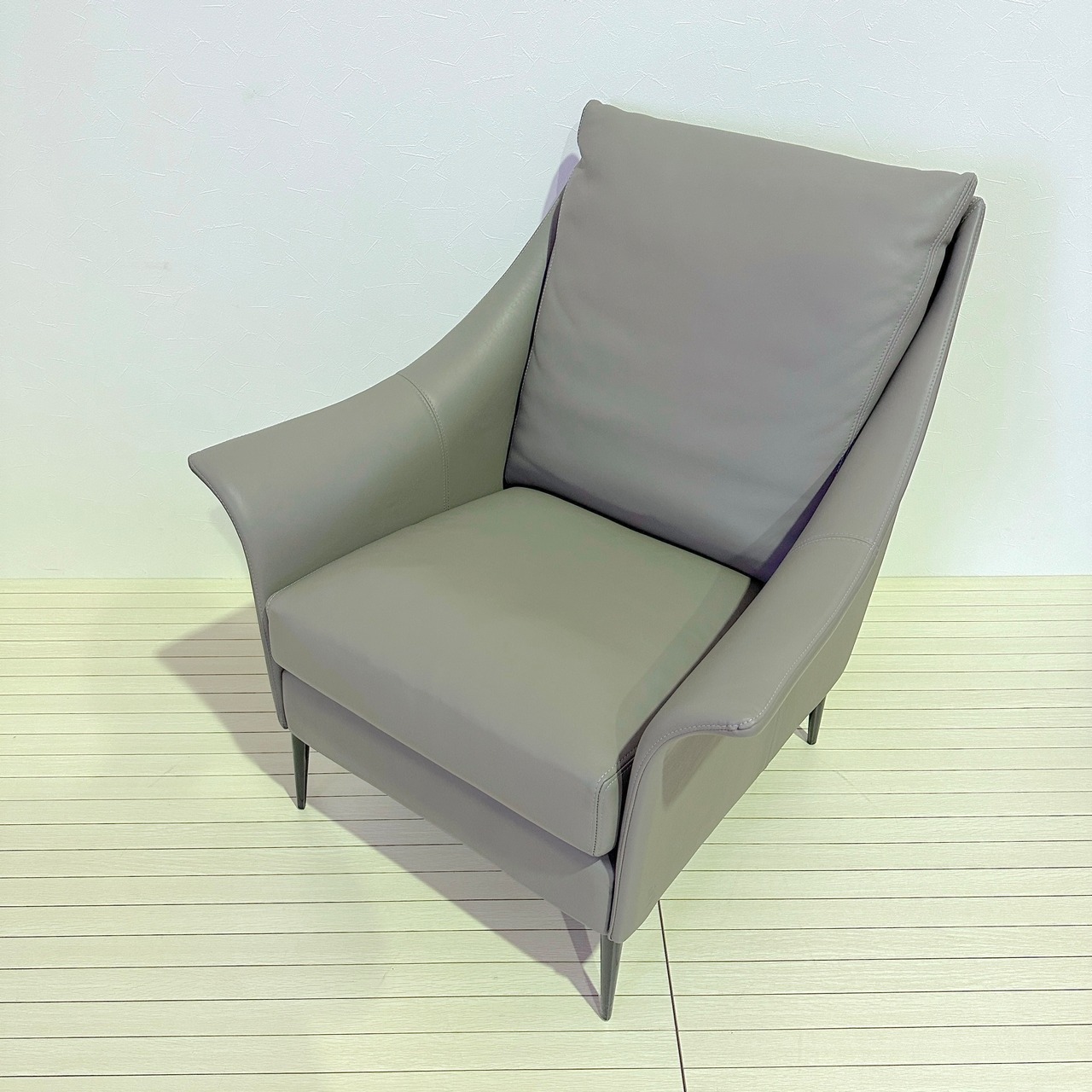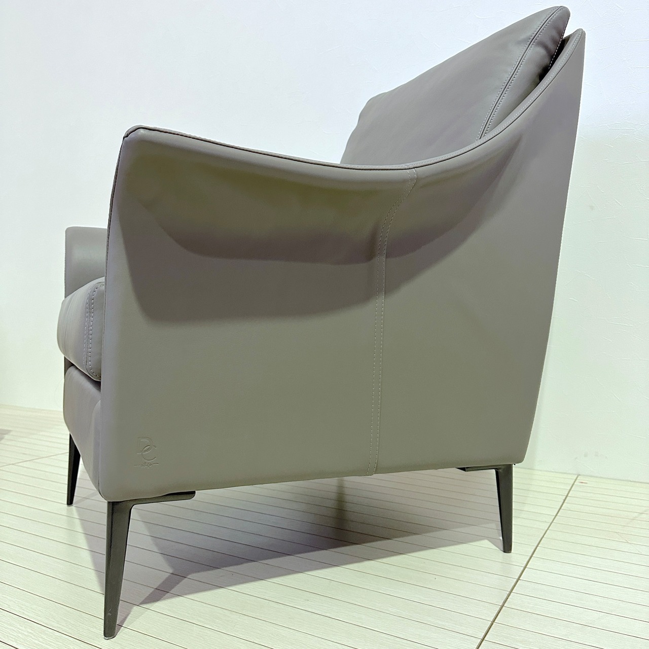 この一人掛けソファは、流れるような曲線美とモダンなデザインが特徴。アームから背もたれにかけての滑らかなフォルムは、シンプルながらも高級感を漂わせ、どんなインテリアにも上品に調和します。使用されている**本革**は、フランス産の最高級レザーで、その柔らかさと耐久性は他に類を見ません。長時間座っていても快適な座り心地が続き、デザインだけでなく、実用性にも優れた逸品です。